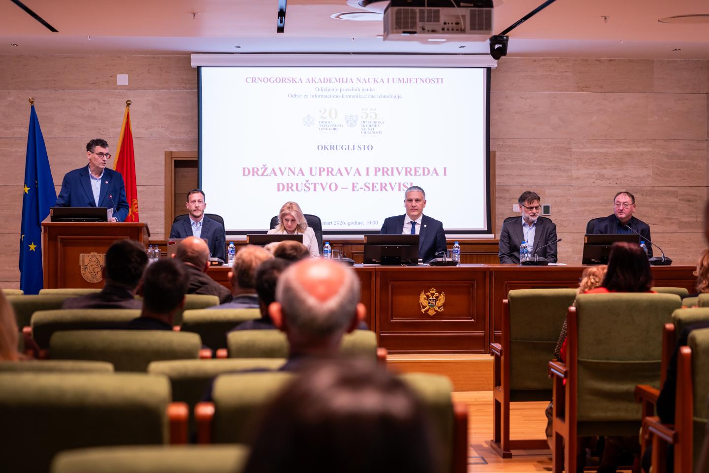 Okrugli sto ,,Državna uprava i privreda i društvo – e-servisi“ održan je 25. marta 2026. godine, u Crnogorskoj akademiji nauka i umjetnosti.