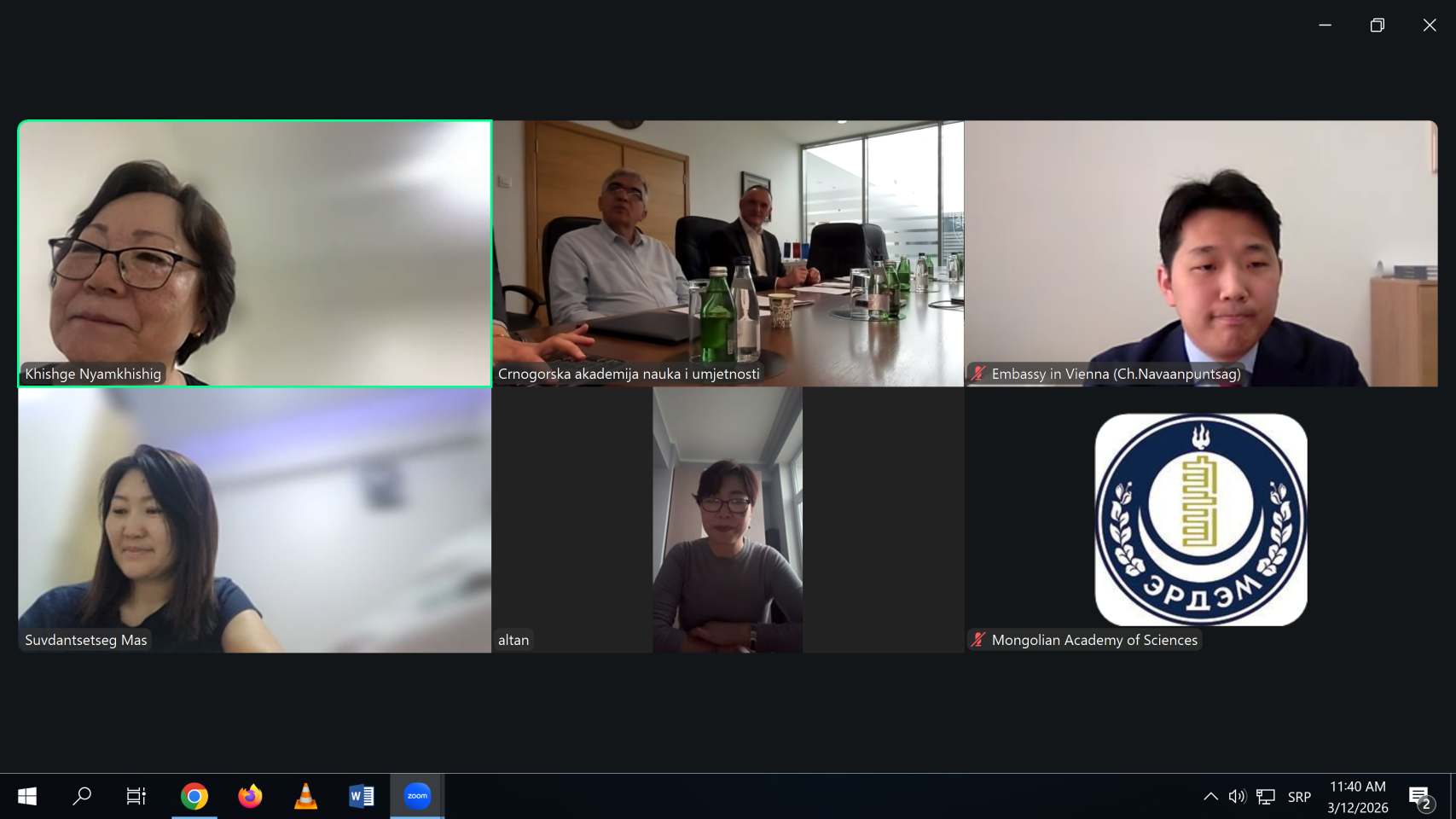 U cilju uspostavljanja bilateralne naučne i akademijske saradnje, danas, 12. marta 2026. godine održan je onlajn sastanak predstavnika Crnogorske akademije nauka i umjetnosti i Mongolske akademije nauka.