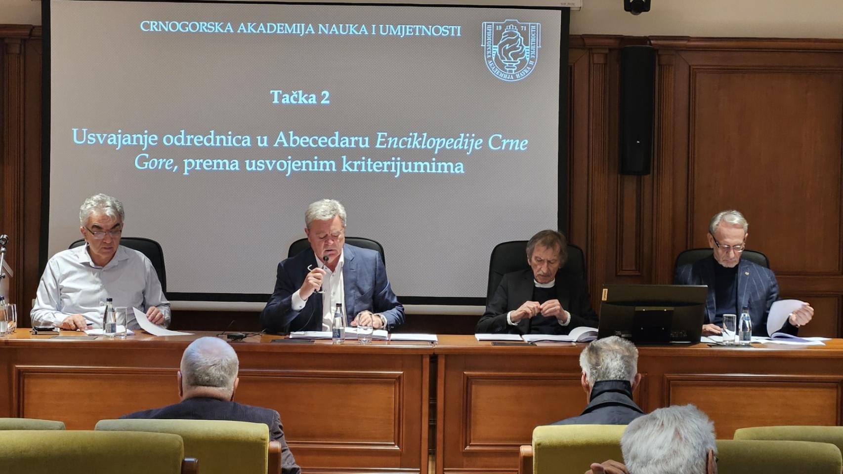 U utorak, 22. decembra 2025. u Crnogorskoj akademiji nauka i umjetnosti održana je XXII sjednica Redakcije Enciklopedije Crne Gore. Sjednici su prisustvovali i predsjednik CANU, akademik Ljubiša Stanković; urednici struka Sport i Mediji i novinarstvo, kao i sekretari oblasti, tema i struka. Trenutni broj odrednica u Abecedaru je 3258 (1792 biografskih i 1466 predmetnih). Redakcija je nastavila usvajanje odrednica, prema prethodno usvojenim kriterijumima. Zaključeno je da urednici tema i struka nastave rad na dopuni kriterijuma i selekciji odrednica, kako bi se na narednoj sjednici nastavilo njihovo usvajanje. Redakcija je zaključila da se nastavi rad i na kategorizaciji odrednica i predlozima autora usvojenih odrednica. Redakcija je donijela odluku o imenovanju urednika struke Nauka i urednika struke Dijaspora, u temi Država, politika i građansko društvo, u oblasti Država i društvo.