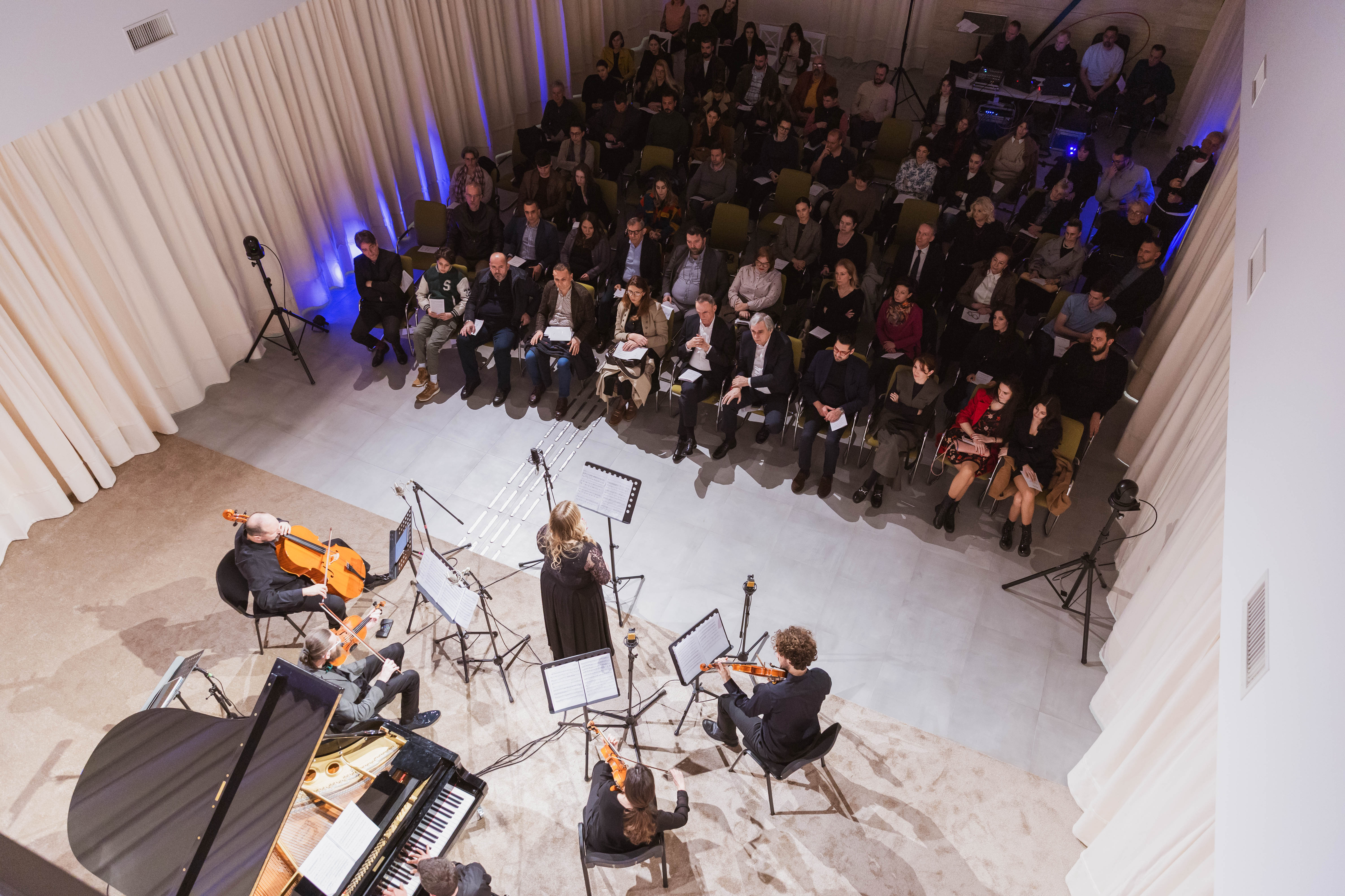 Izvođački ansambl činili su mladi crnogorski umjetnici: Igor Pejović (violina), Luna Kostadinović (violina), Uroš Lapčević (viola), Vladimir Drobnjak (violončelo), Aleksandra Trifunović (kontrabas), Stefan Pavićević (klarinet), Marija Mitrović (klavir), Novak Pavličić (klavir) i Anja Radović (sopran).
